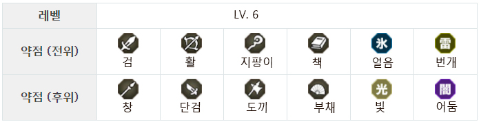 레벨약점 (전위)약점 (후위)